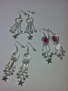 Next up are earrings. These are high-quality silver plated. I could work with sterling, but I want my projects to be affordable. Nothing that I sell is over $15 - the best price point for gifts. The first group contains some of my Wind Chime Earrings. They really do tinkle when you turn your head or in a breeze outside. I love the soft jingling in my ears. The beads are Swarovski crystals, so they catch the sunlight and twinkle.